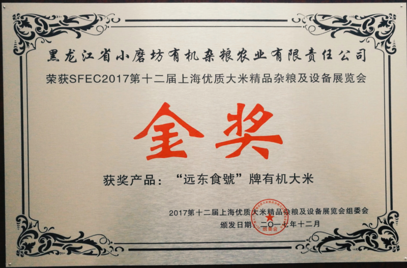 SFEC2017第十二屆上海優(yōu)質(zhì)大米精品雜糧及設備展覽會金獎