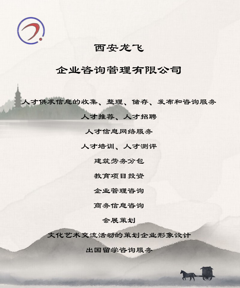 經(jīng)營項目:人才供求信息的收集、整理、儲存、發(fā)布和咨詢服務(wù);人才推薦;人才招聘;人才信息網(wǎng)絡(luò)服務(wù);人才培訓(xùn);人才測評;法律允許的其他服務(wù)。一般經(jīng)營項目:建筑勞務(wù)分包;教育項目投資;企業(yè)管理咨詢;商務(wù)信息查詢;會展策劃;文化藝術(shù)交流活動的策劃企業(yè)形象設(shè)計;出國留學(xué)咨詢服務(wù)。