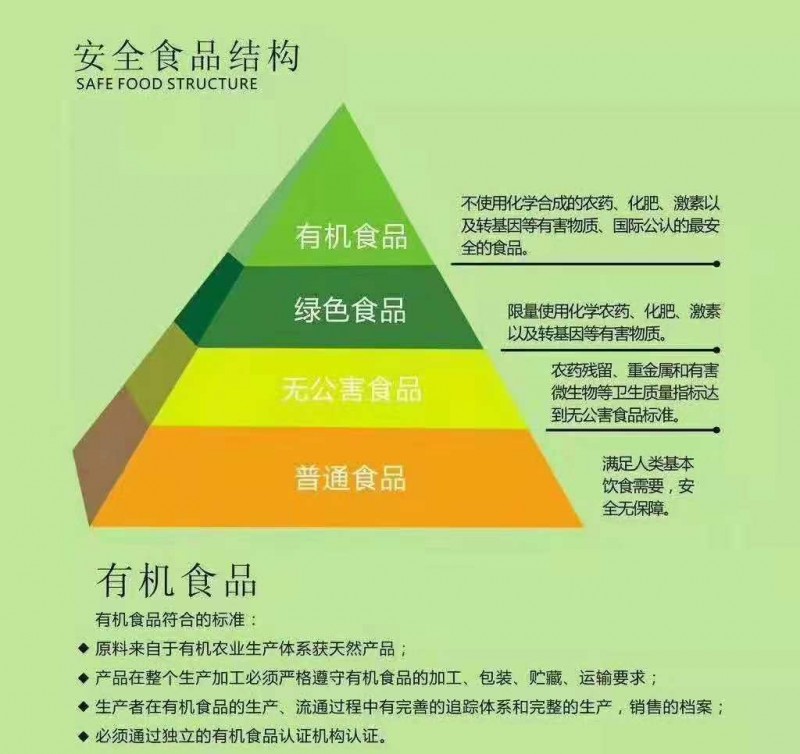 無公害食品要符合入市的國家基本標(biāo)準(zhǔn),而綠色食品和有機食品不僅要符合國家標(biāo)準(zhǔn),還有各自更高的行業(yè)認定標(biāo)準(zhǔn)。換句話說,綠色食品比無公害食品的標(biāo)準(zhǔn)要高,而有機食品的標(biāo)準(zhǔn)更高,不僅全程不得使用化學(xué)肥料、農(nóng)藥等,連種子、土壤、水質(zhì)、大氣等都有嚴苛的要求。因此,在人們心目中,有機就是生活品質(zhì)和環(huán)境友好的代名詞,意味著更天然、環(huán)保、健康、安全。