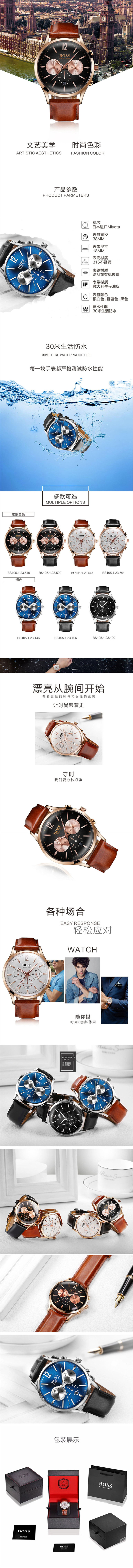 Boss 新款手表 男士六針計時石英腕表 商務(wù)休閑皮帶男表